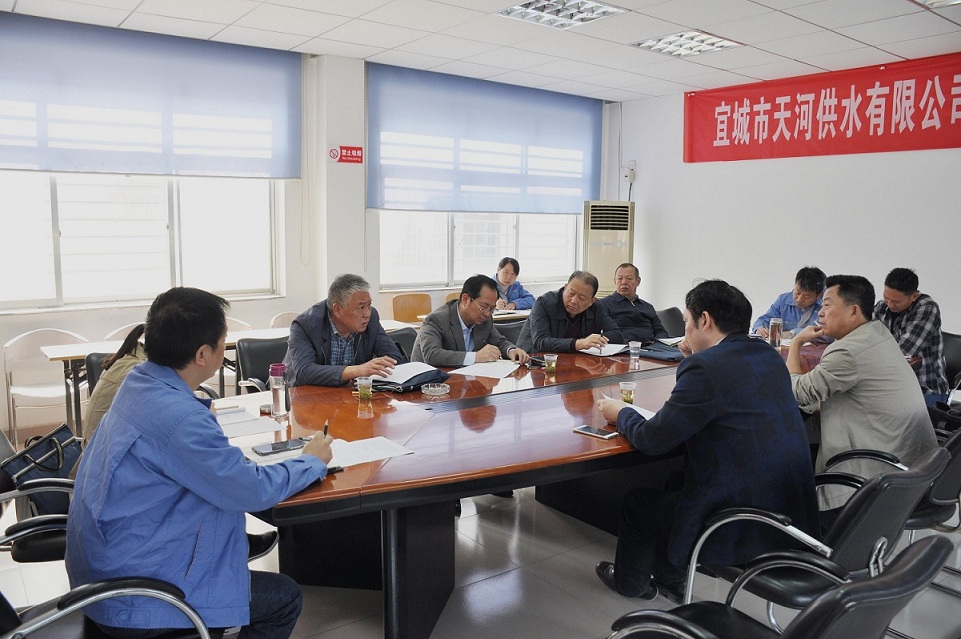 10月17日上午,襄陽市國資委副主任鄧世海在集團(tuán)公司黨委書記兼董事長李平、總經(jīng)理甄先強(qiáng)、副總經(jīng)理張華的陪同下,前往宜城天河供水公司,就宜城水廠二期改擴(kuò)建工程事宜與宜城市政府副市長譚濤、宜城市住建局局長肖俊等進(jìn)行磋商洽談,宜城天河供水公司黨支部書記金鋒、總經(jīng)理趙建、總會(huì)計(jì)師汪志輝參加了此次磋商洽談。